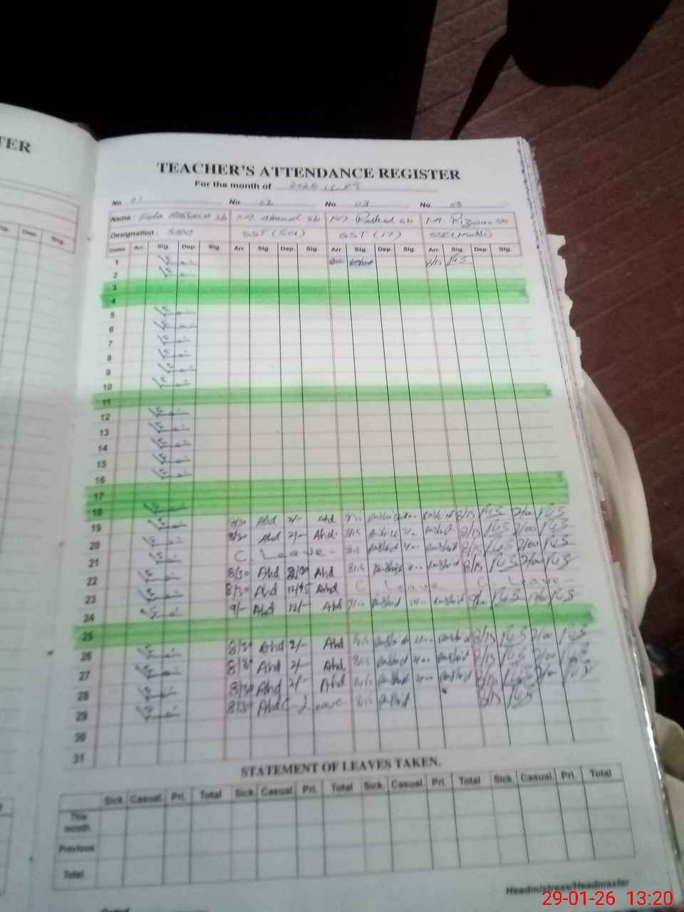 | CNIC | Full Name | Designation | R/C | Absence During Last Calender Month |