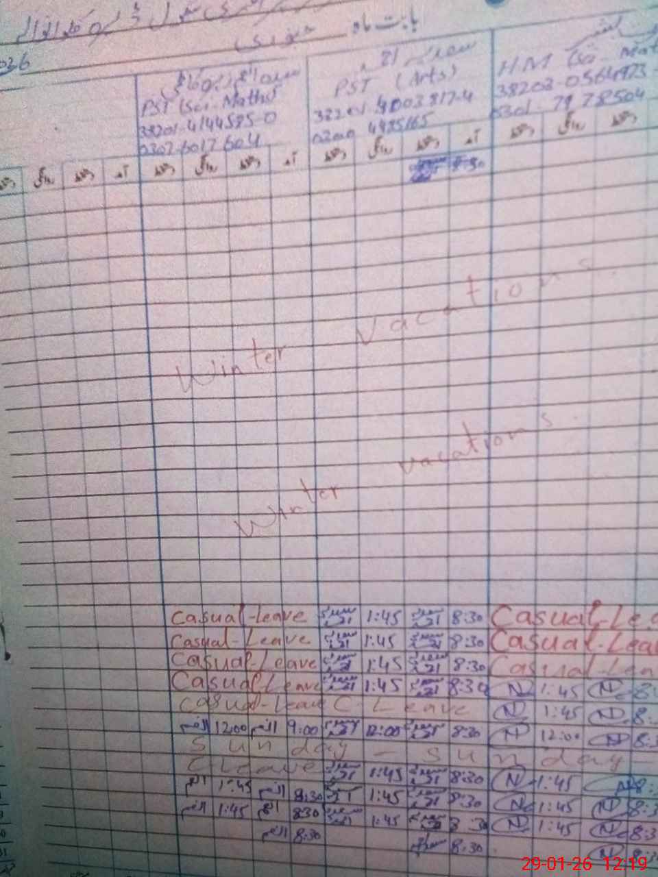 | Name: Kh**** La**** Designation: (School Headmaster's/Headmistress's) PST/PTC/JV Phone/Cell Number: 03**** |