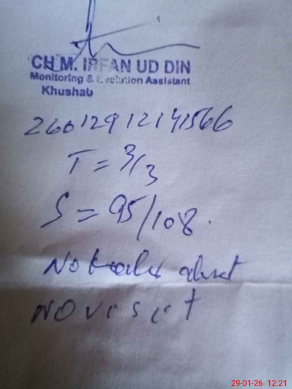 | Remarks (Use Separate Page if Required): ggps kaluan wala student on sis 108 St dent on register 108 head count 95 no teacher absent no visit | |||||