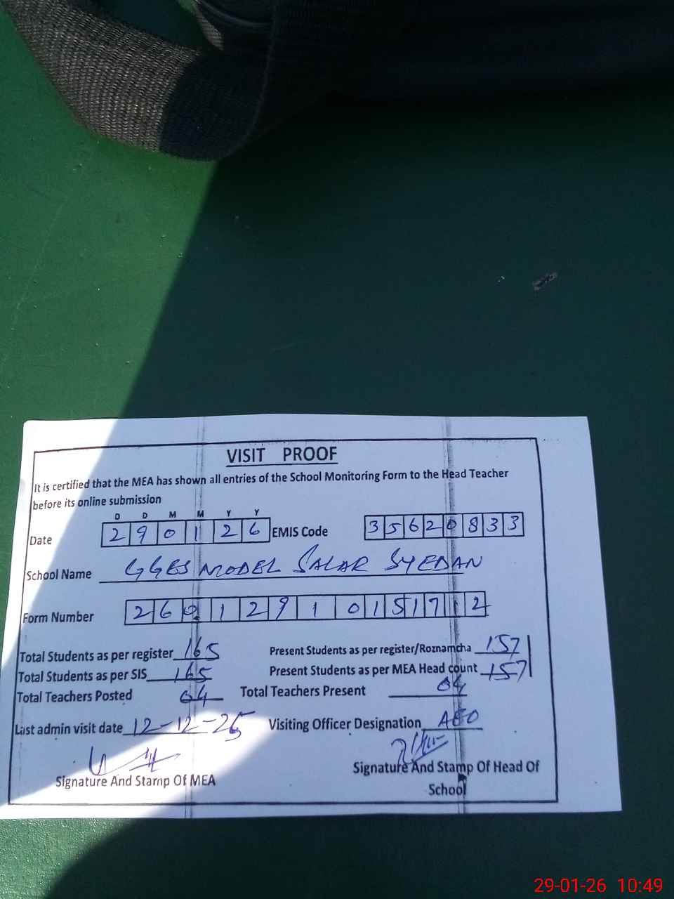 | EMIS Code: 35620883 | Name of School: GGES MODEL SALAR SYEDAN | |||