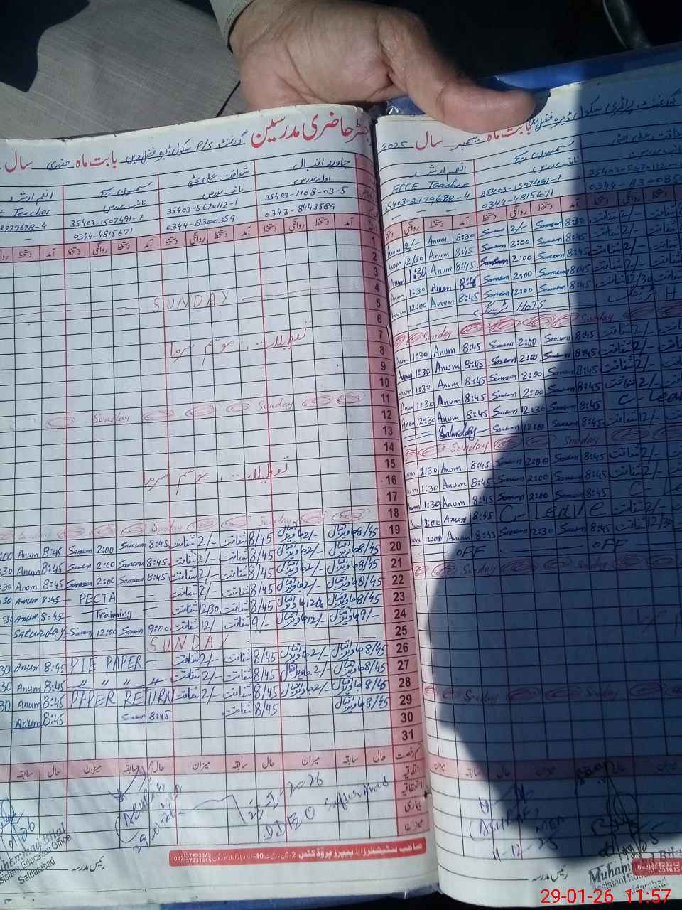 | CNIC | Full Name | Designation | R/C | Absence During Last Calender Month |