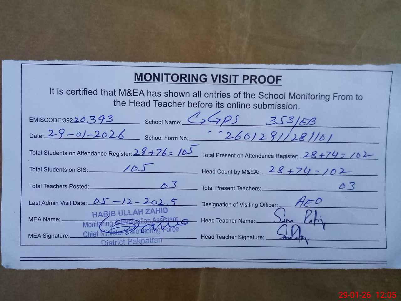 | EMIS Code: 39220393 | Name of School: GGPS 353 EB ARIFWALA | |||
