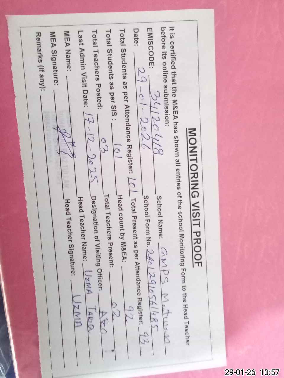 | EMIS Code: 34120418 | Name of School: GMPS MATWAN | |||
