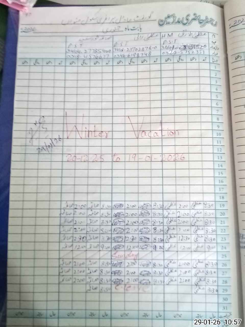 | Name: Uz**** Ta**** Designation: (School Headmaster's/Headmistress's) PST Phone/Cell Number: 03**** |