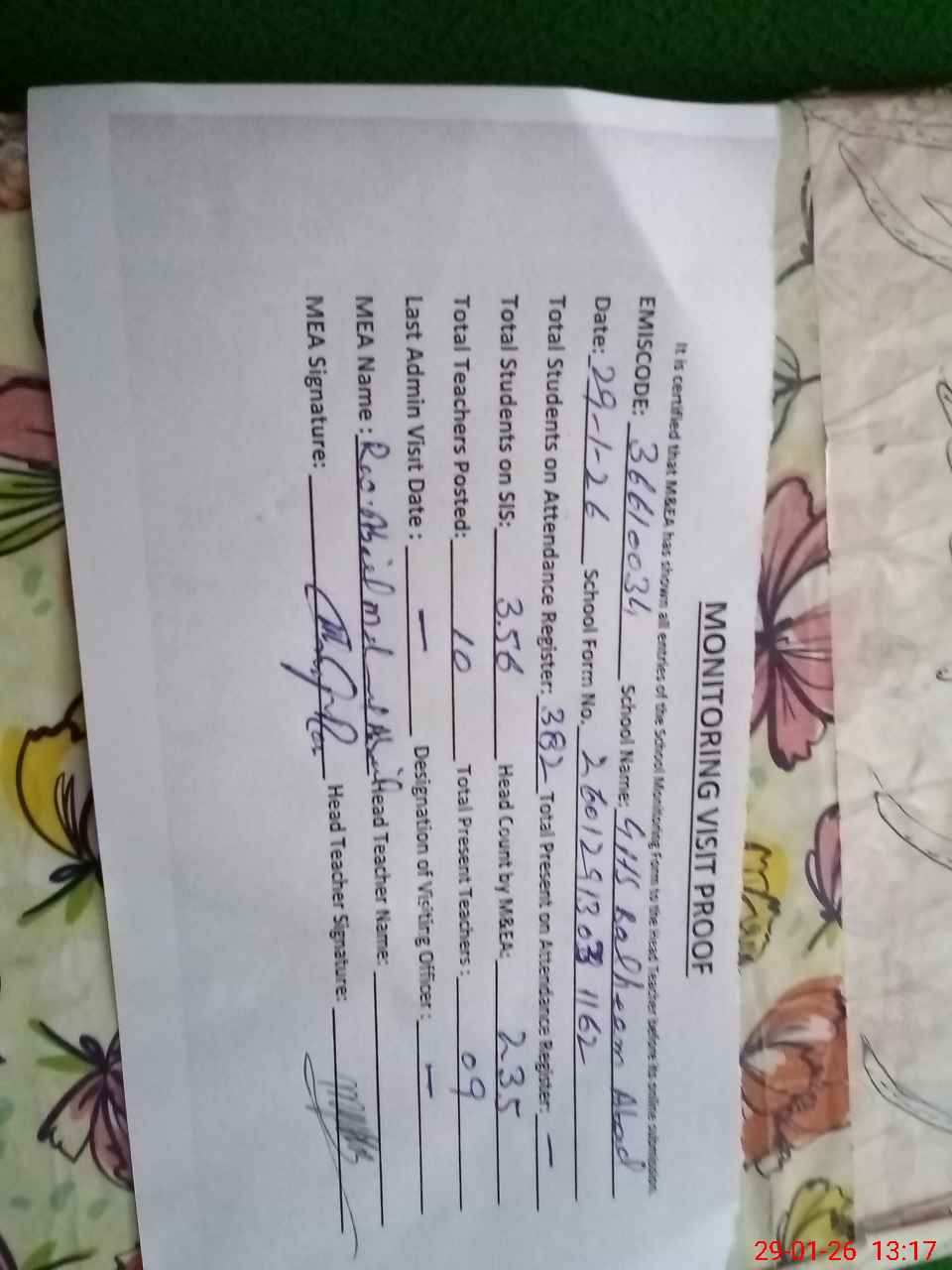 | EMIS Code: 36610034 | Name of School: GHS BALHEEM ABAD MOUZA PUGAL WARI | |||