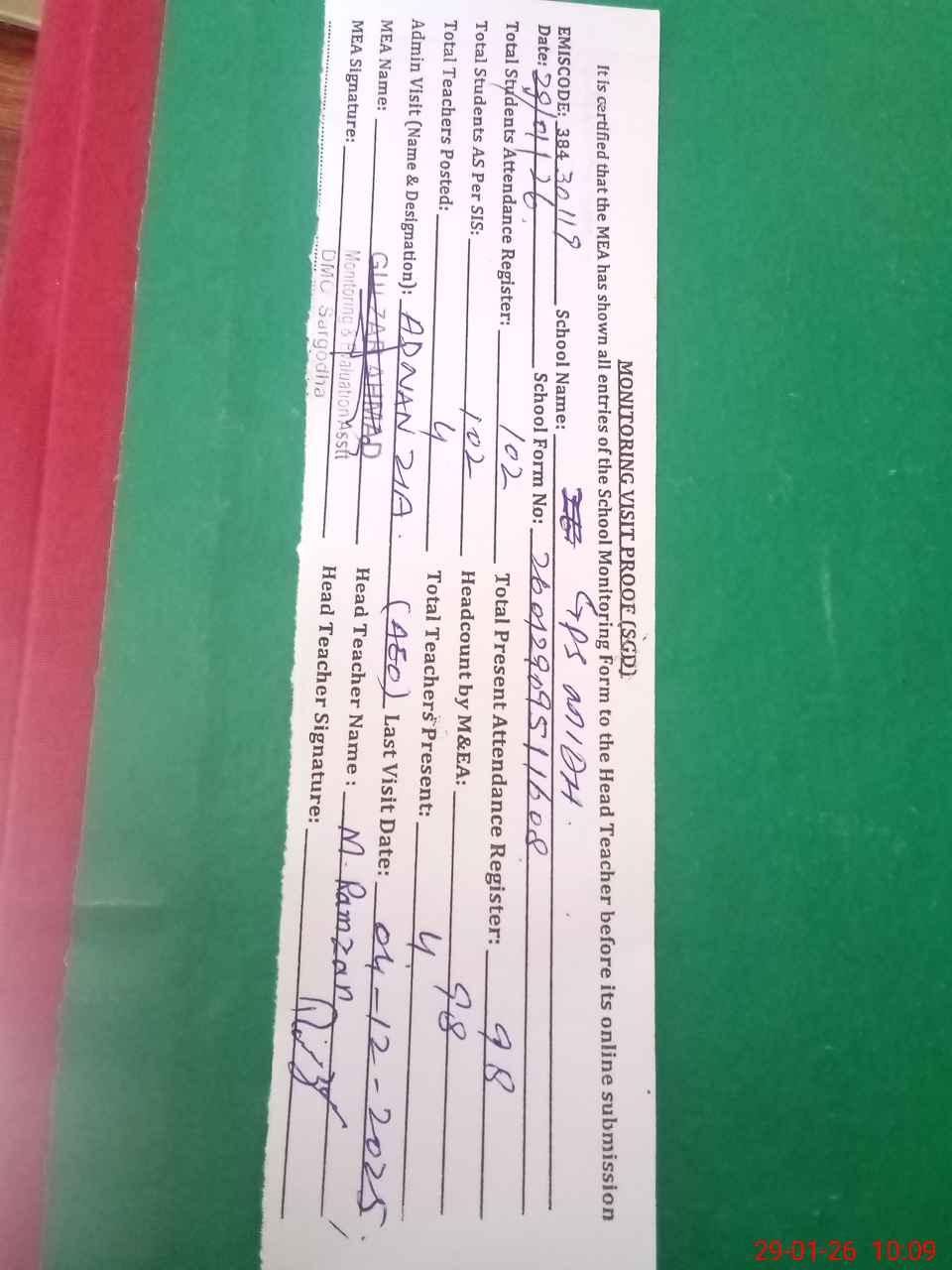 | Certified that this School was Inspected by the Undersigned MEA/DMO Today and the Information Stated Above is as Per Record. | |||||