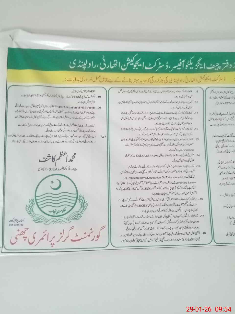 | District: RAWALPINDI | Tehsil: KAHUTA | Markaz: KAHUTA - FEMALE | Level: Primary | |