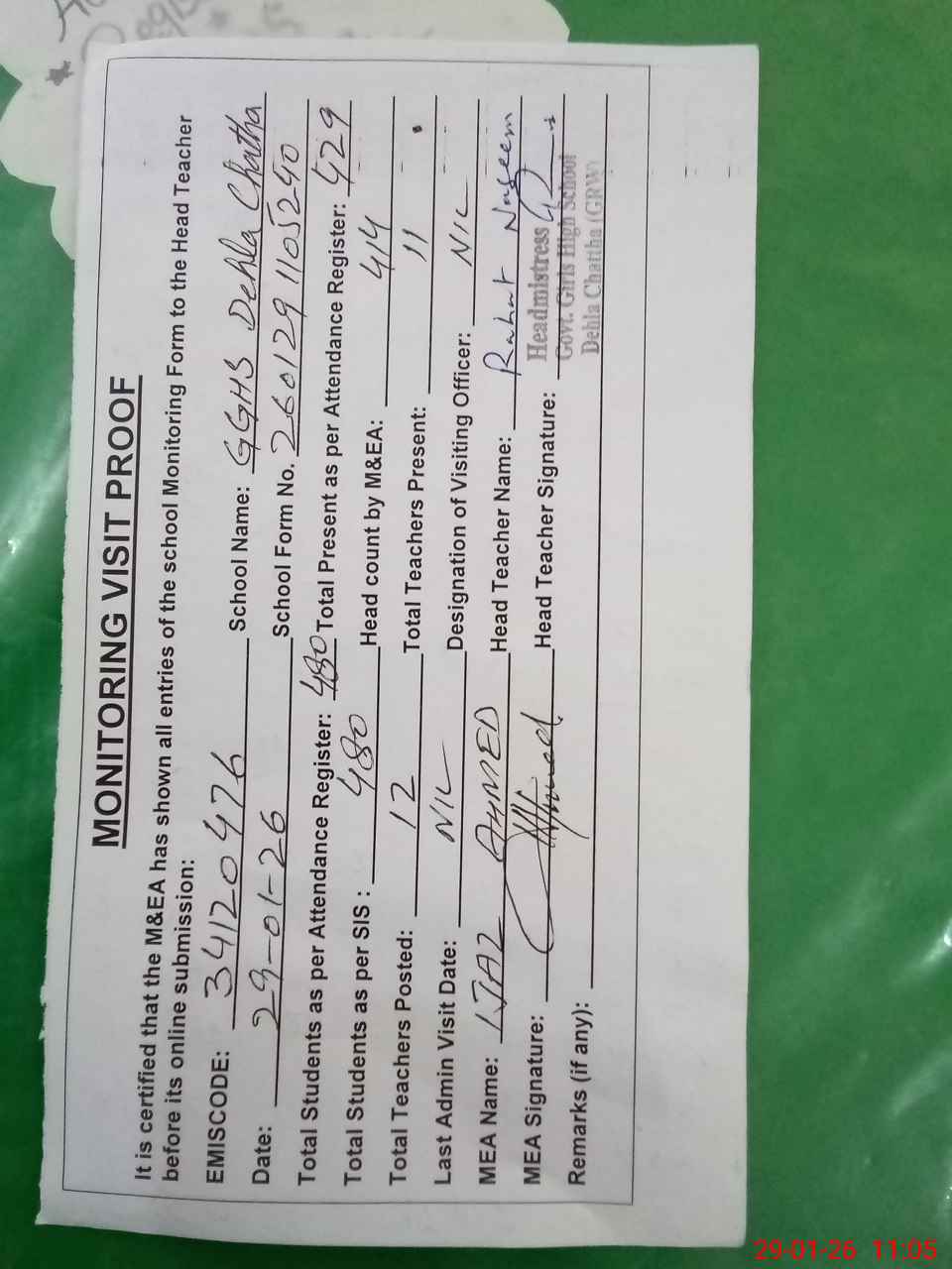 | EMIS Code: 34120476 | Name of School: GGHS DEHLLA CHATHA | |||