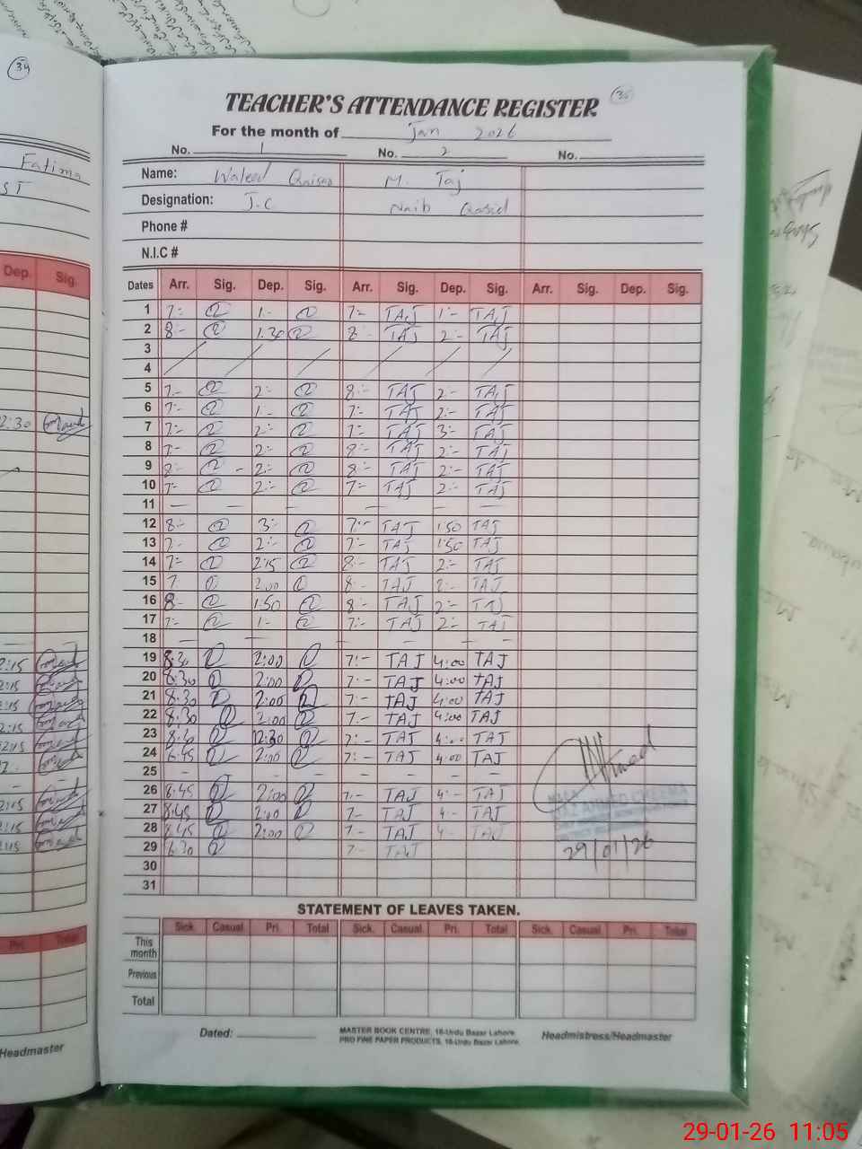 | 34**** | Wa**** Za**** | SST Computer Science | Regular | 2 | 0 | 0 | 0 | 0 | 0 | 0 | 0 | 2 | Maternity |