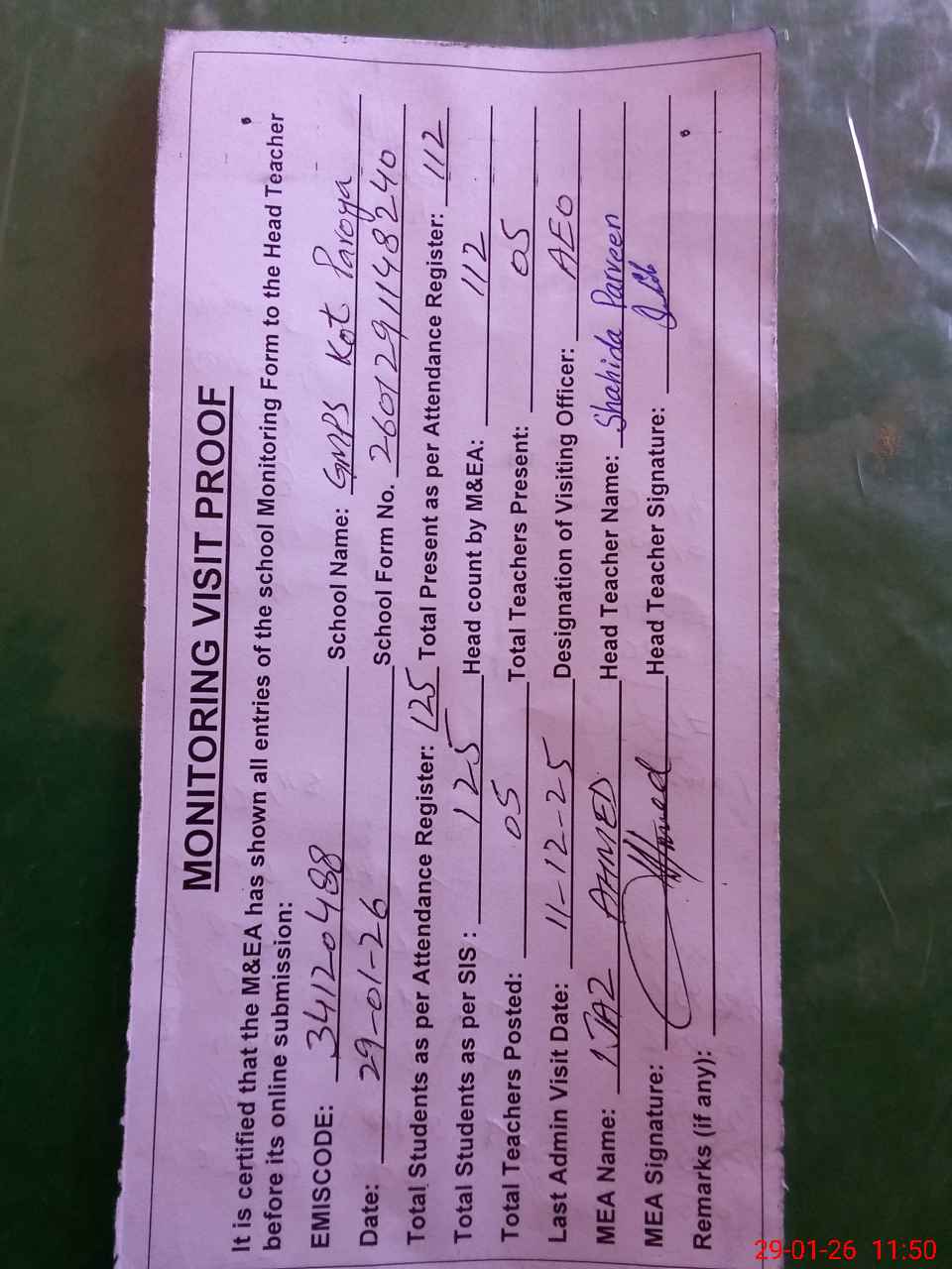 | EMIS Code: 34120488 | Name of School: GMPS KOT PAROIA | |||