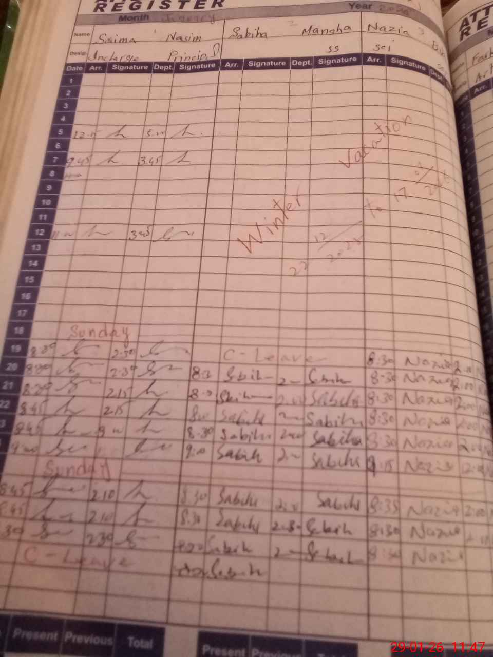 | No. of Students Present - Female | 0 | 0 | 0 | 0 | 0 | 0 | 0 | 0 | 0 | 0 | 0 | 0 | 0 | 0 | 0 | |