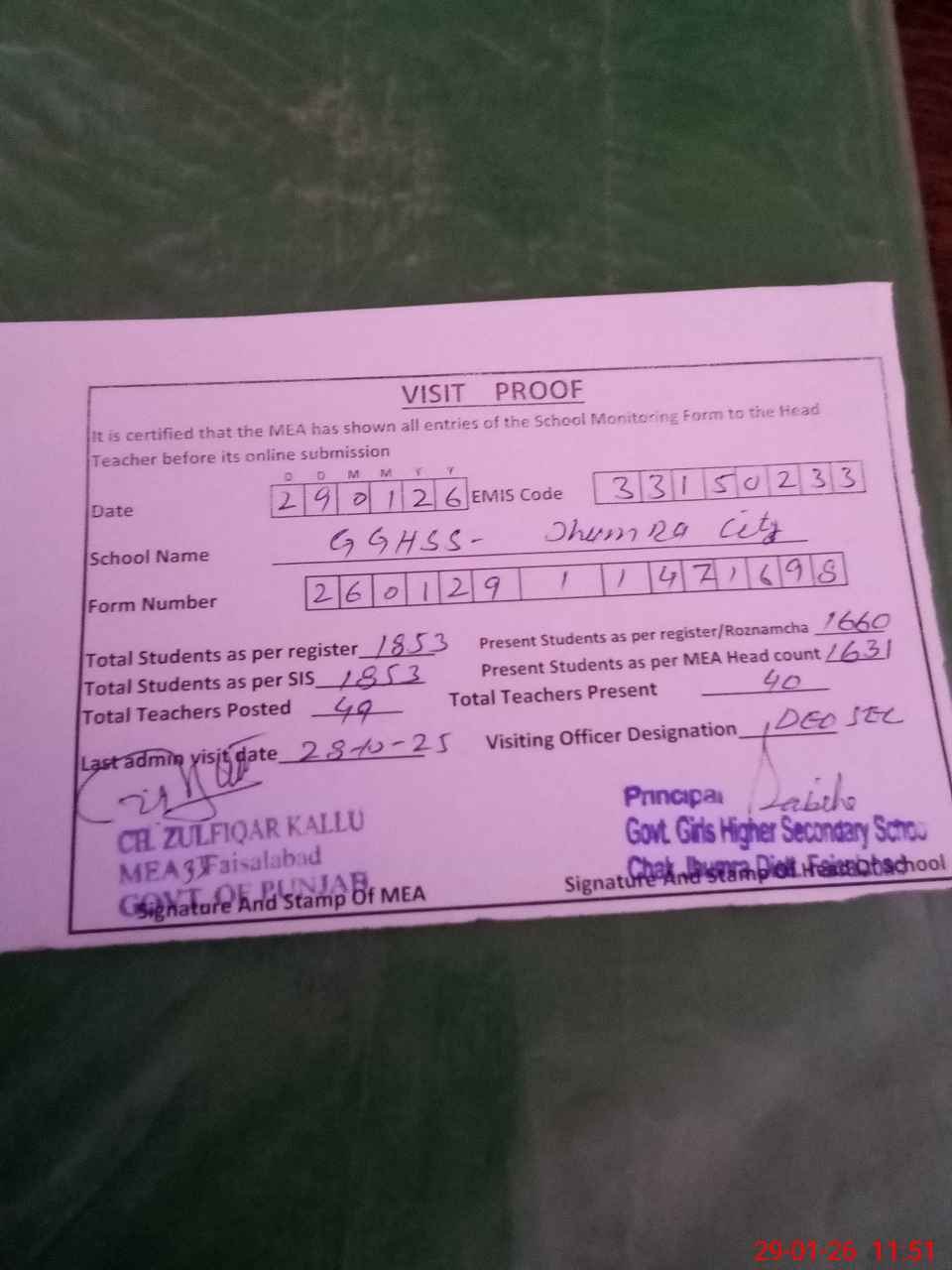 | EMIS Code: 33150233 | Name of School: GGHSS CHAK JHUMRA | |||