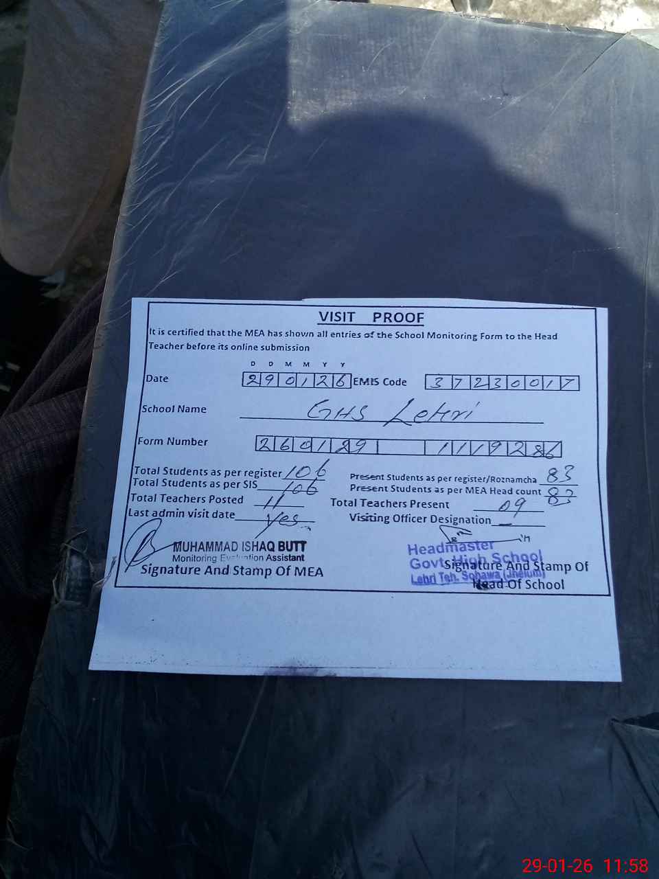 | EMIS Code: 37230017 | Name of School: GHS LEHRI | |||