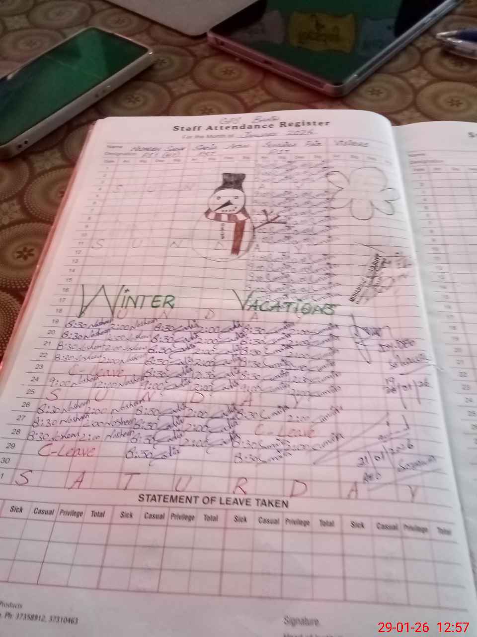 | Leave | Duty | Absent | Maternity | Medical | Ex- Pak |