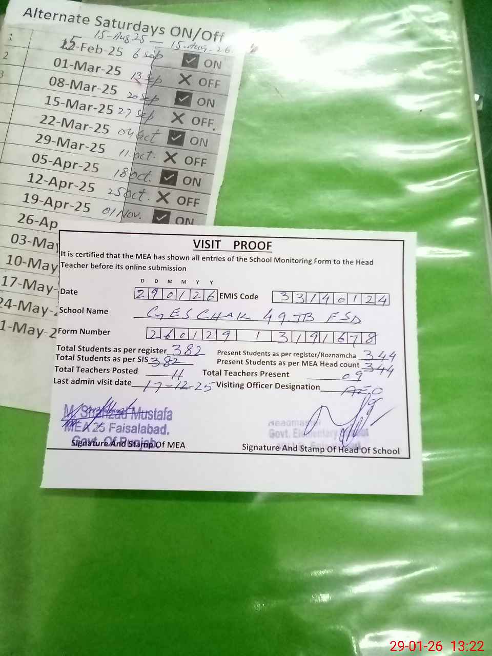 | EMIS Code: 33140124 | Name of School: GES CHAK 49 JB FSD | |||