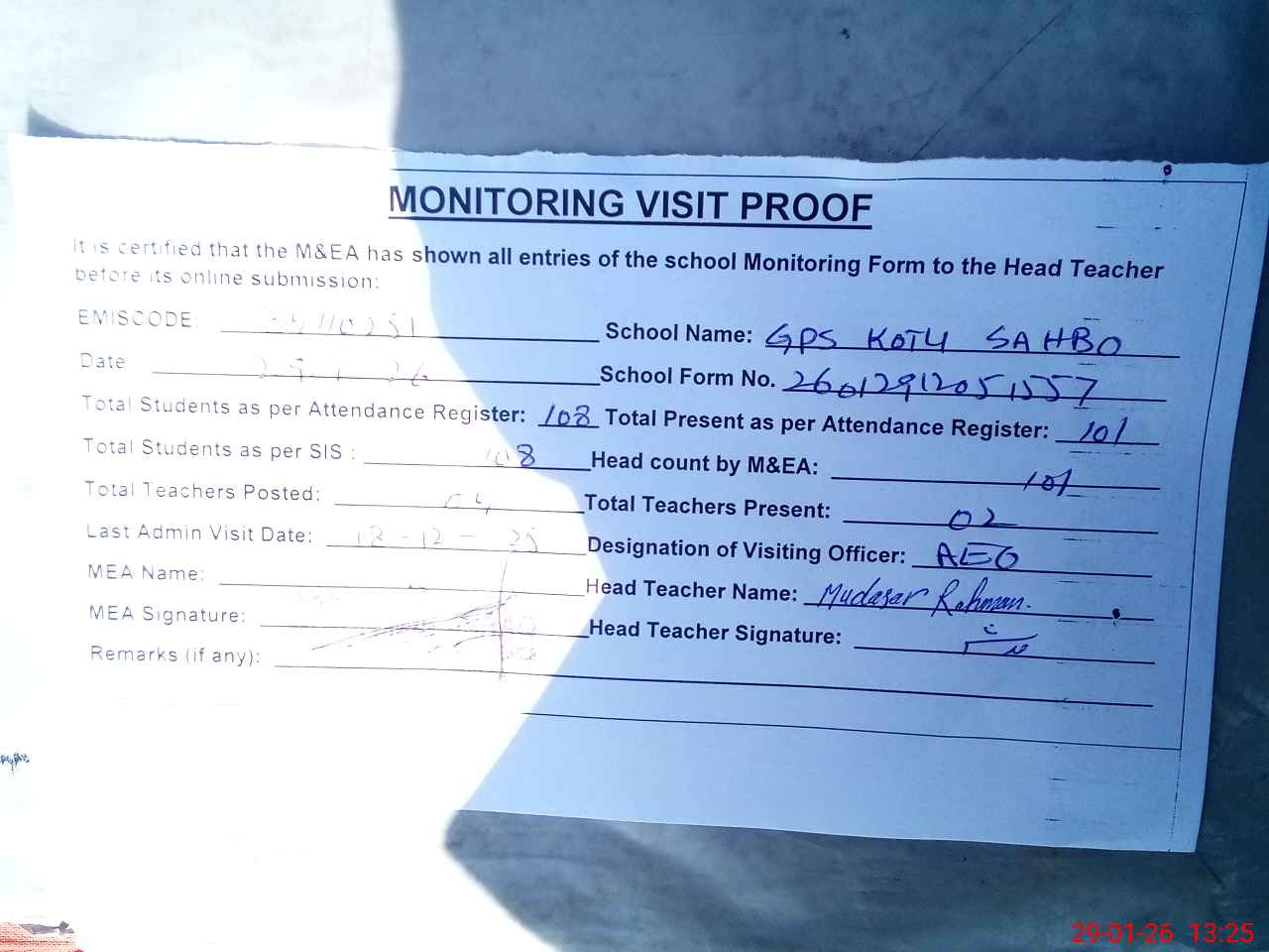 | EMIS Code: 34110251 | Name of School: GPS KOTLI SAHBO | |||