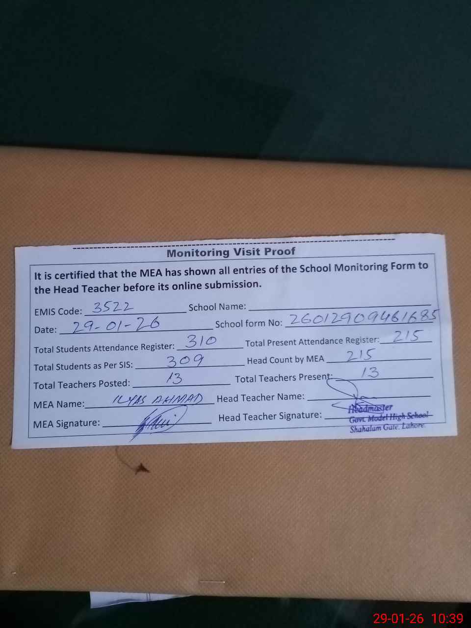 | Certified that this School was Inspected by the Undersigned MEA/DMO Today and the Information Stated Above is as Per Record. | |||||