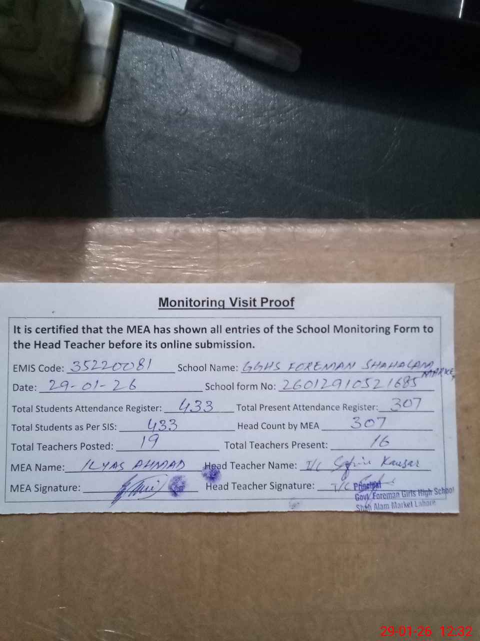 | EMIS Code: 35220081 | Name of School: GGHS FOREMAN SHAHALAM MARKET | |||