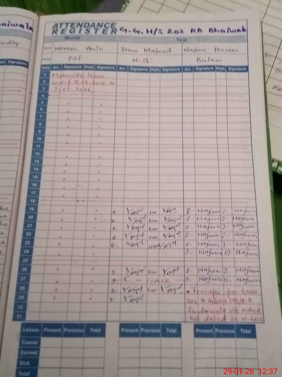 | Leave | Duty | Absent | Maternity | Medical | Ex- Pak |