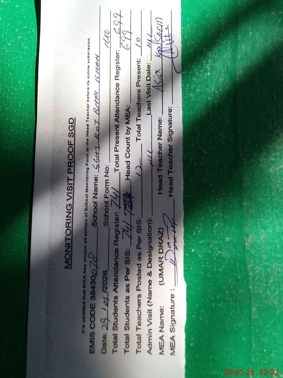 | EMIS Code: 38430078 | Name of School: GGHS KOT BHAI KHAN | |||
