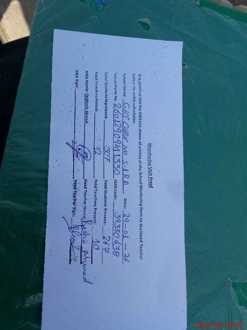 | EMIS Code: 39330438 | Name of School: GHS CHAK NO. 5/1-RA | |||
