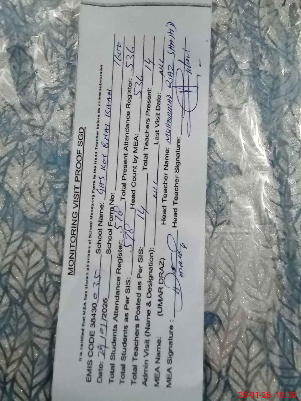 | EMIS Code: 38430035 | Name of School: GHS KOT BHAI KHAN SHAH PUR | |||