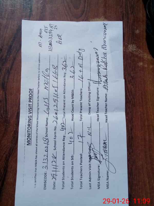 | EMIS Code: 31320018 | Name of School: GHS METLA | |||