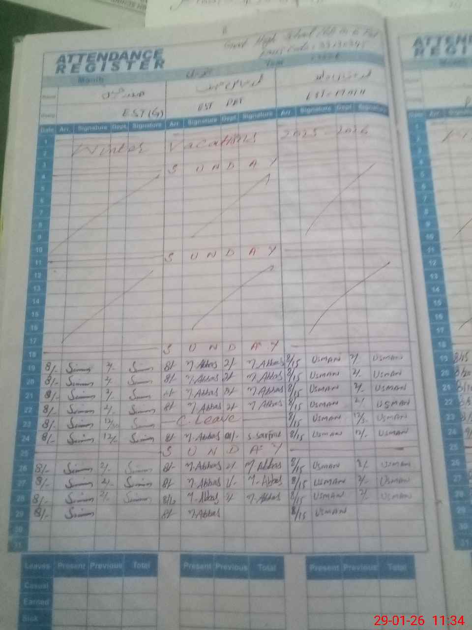 | Leave | Duty | Absent | Maternity | Medical | Ex- Pak |