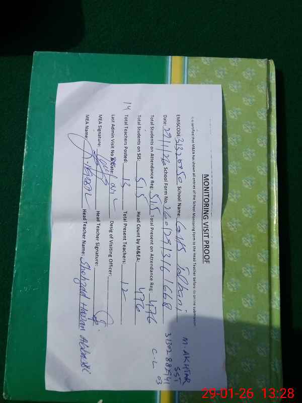 | EMIS Code: 31320050 | Name of School: GHS TALBANI | |||