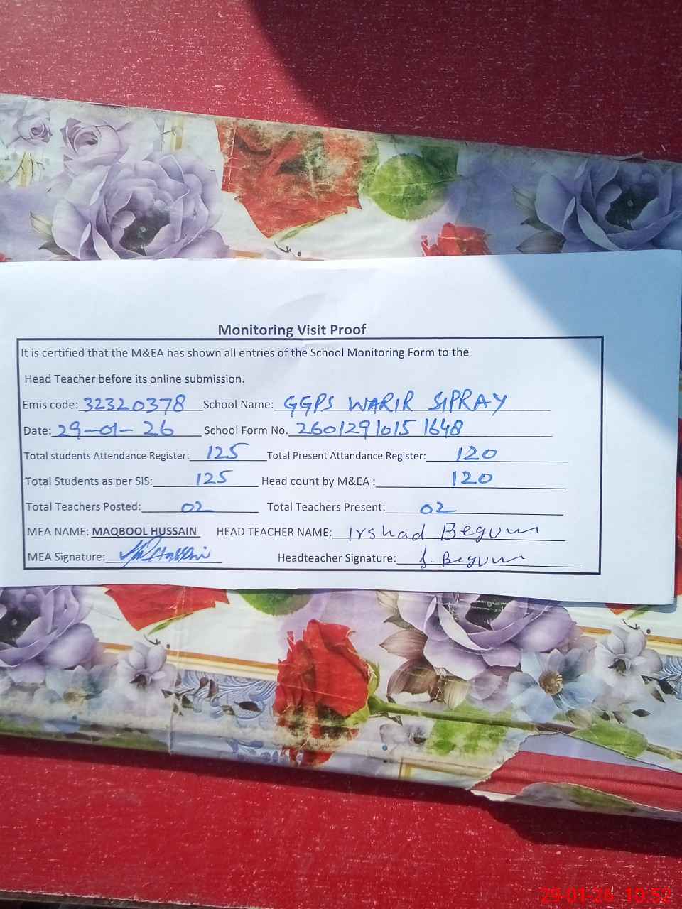 | EMIS Code: 32320378 | Name of School: GGPS WARAR SIPRA | |||