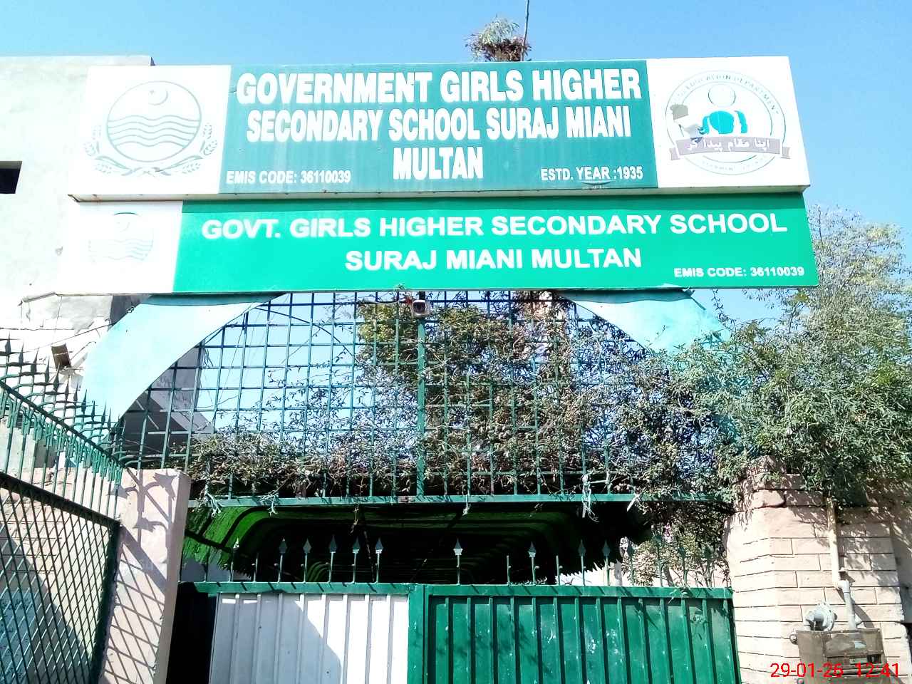 | EMIS Code: 36110039 | Name of School: GGHSS SURAJ MIANI MULTAN | |||