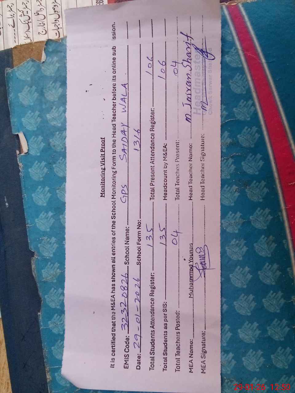 | EMIS Code: 32320826 | Name of School: GPS SAIDAY WALA | |||