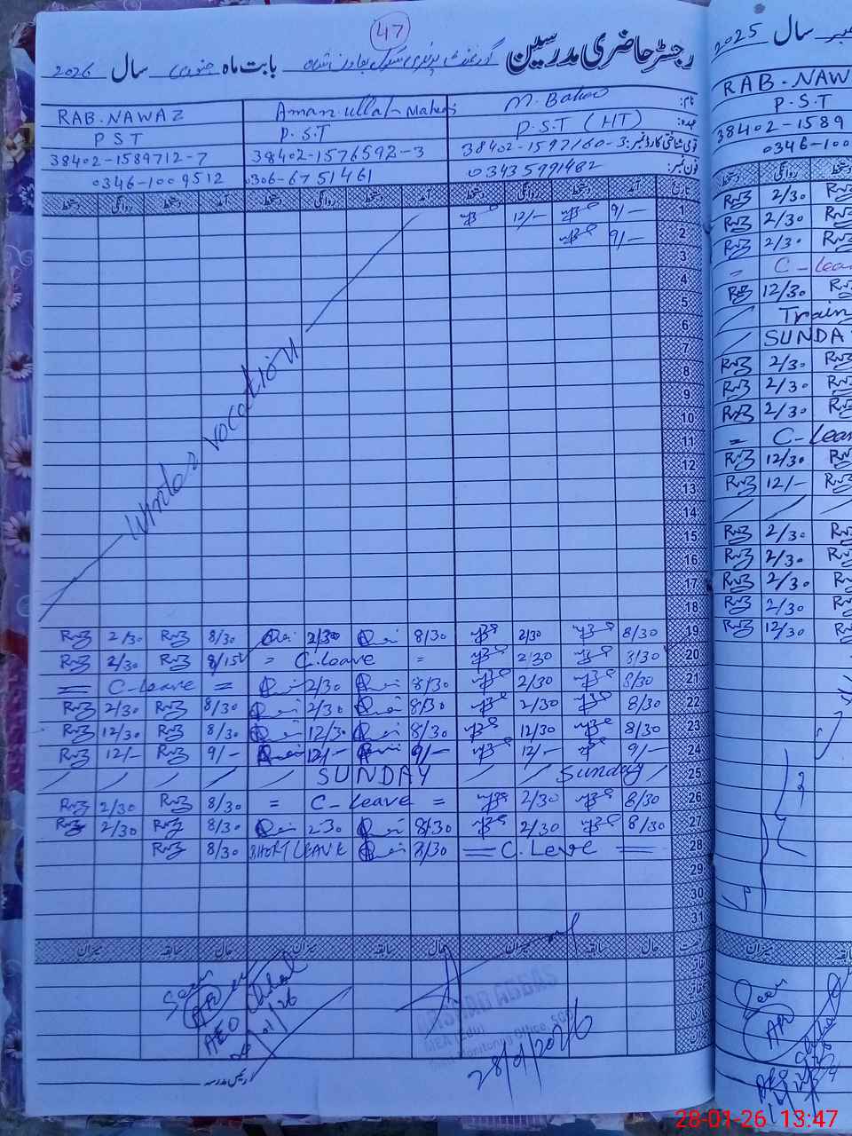 | 38**** | Mu**** Ba**** | PST Science/Maths | Regular | 0 | 0 | 0 | 0 | 0 | 0 | 0 | 0 | 0 | Casual |