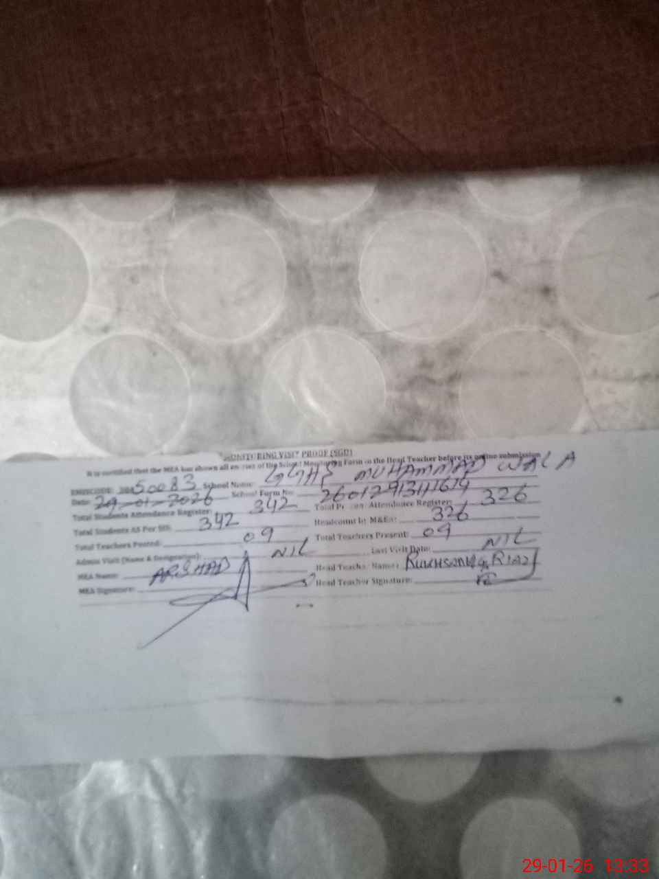| Attendance Register | Head Teacher | MEA with School | Visit Proof |
