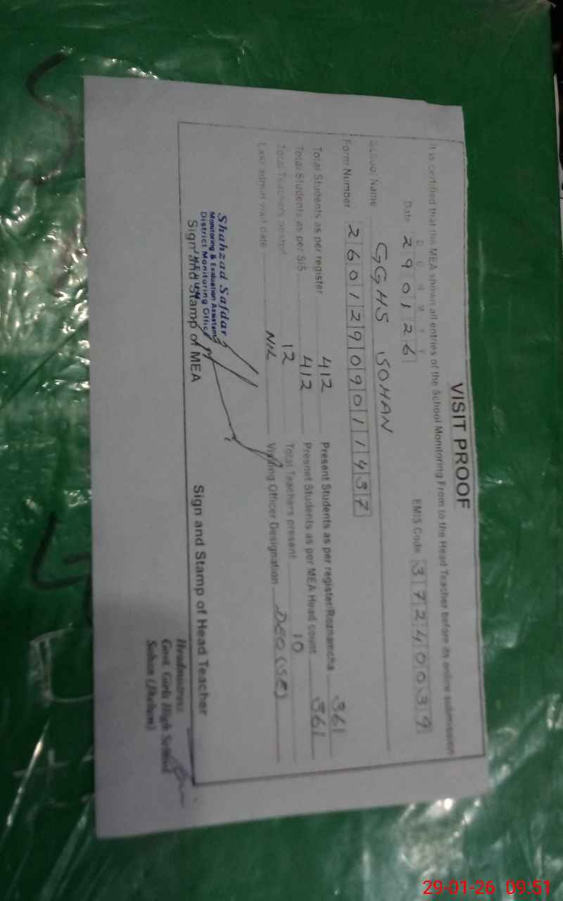 | EMIS Code: 37240039 | Name of School: GGHS SOHAN | |||