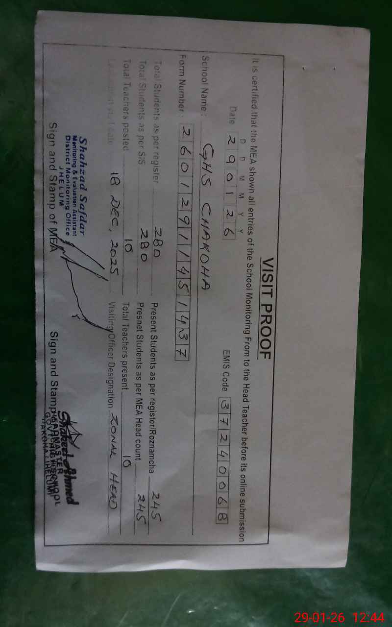 | EMIS Code: 37240068 | Name of School: GHS CHAKOHA | |||
