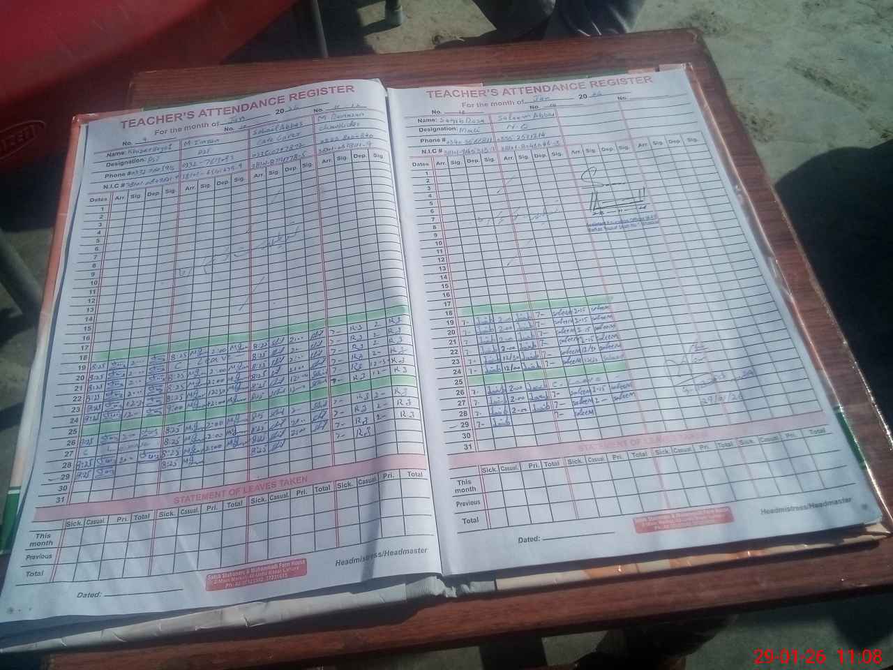 | CNIC | Full Name | Designation | R/C | Absence During Last Calender Month |