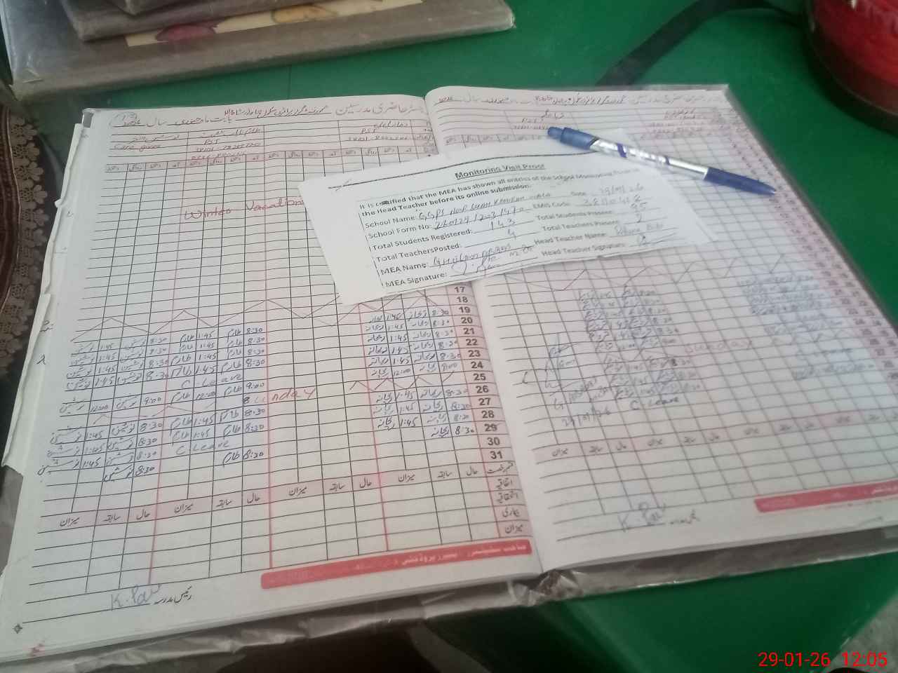 | Attendance Register | Head Teacher | MEA with School | Visit Proof |