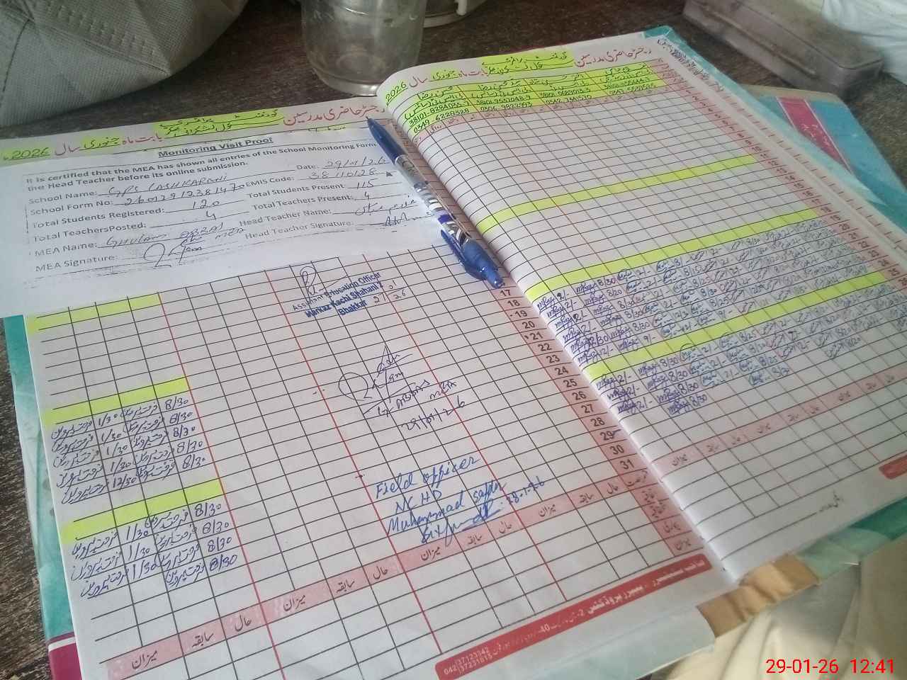 | Remarks (Use Separate Page if Required): last seen by Name Zia ur Rehman Designation AEO Date 27 Jan 2026 | |||||