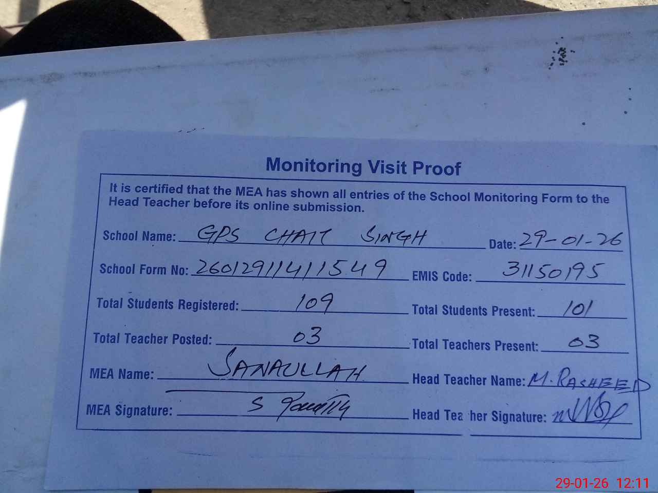 | EMIS Code: 31150195 | Name of School: GPS CHAIT SINGH | |||