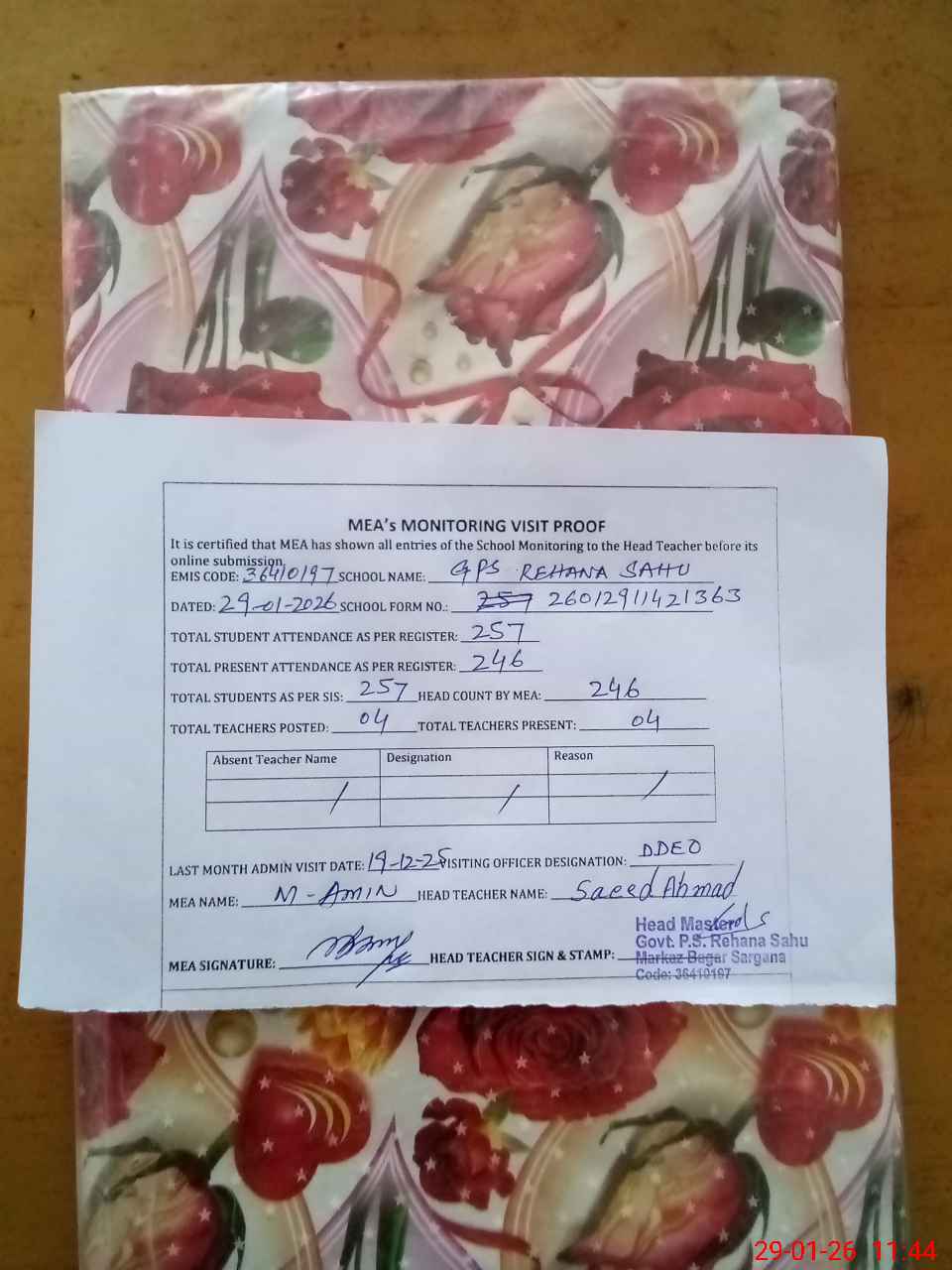 | EMIS Code: 36410197 | Name of School: GPS REHANA SAHU, P/O JODH PUR, KABIRWALA | |||