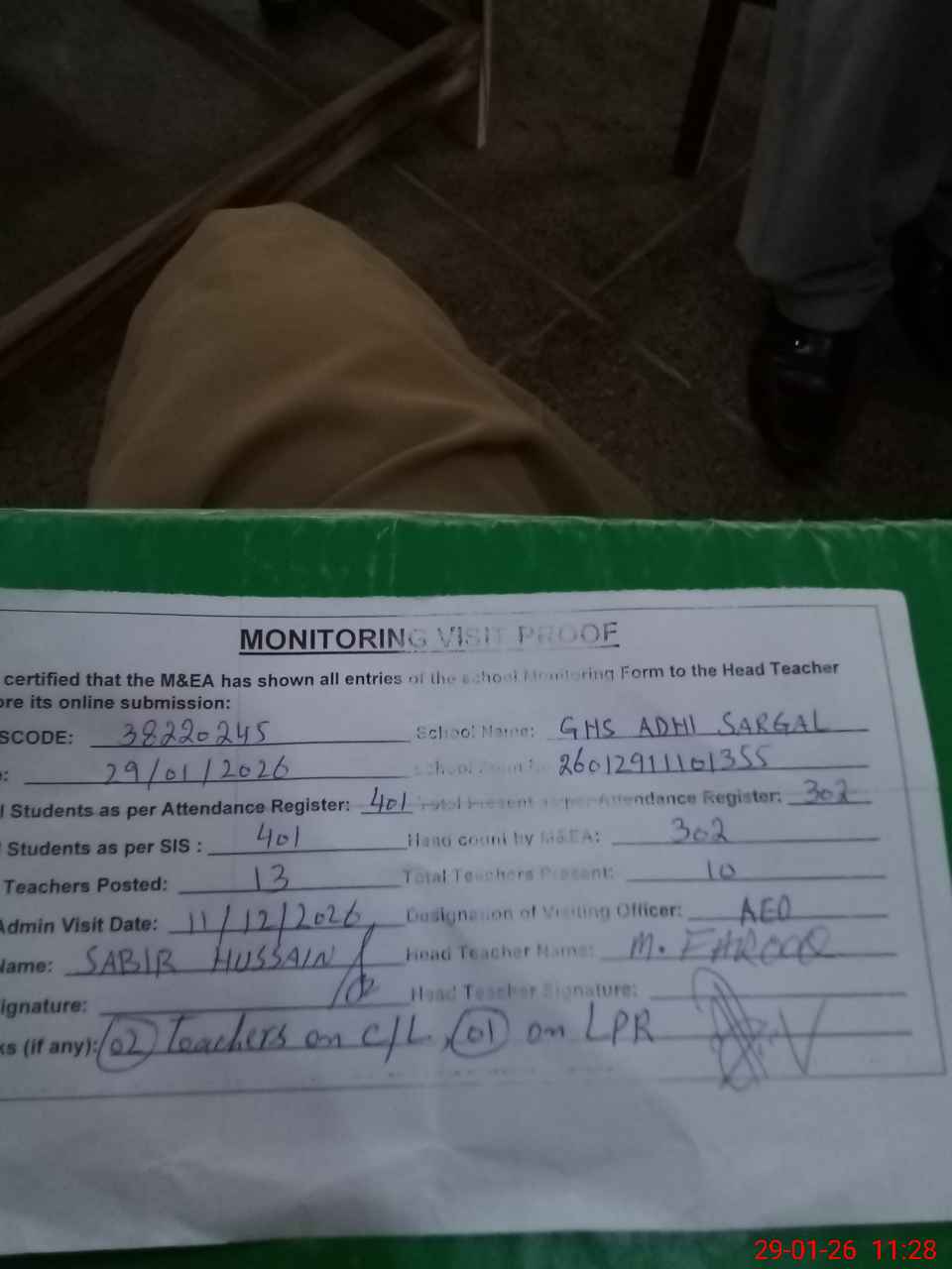 | Remarks (Use Separate Page if Required): no teacher absent total students on register 401 total students on SiS 401 Last admin visit by | |||||