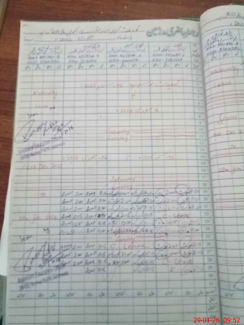 | 33**** | Na**** No**** | PST Arts | Regular | 0 | 0 | 0 | 0 | 0 | 0 | 0 | 0 | 0 | Maternity |