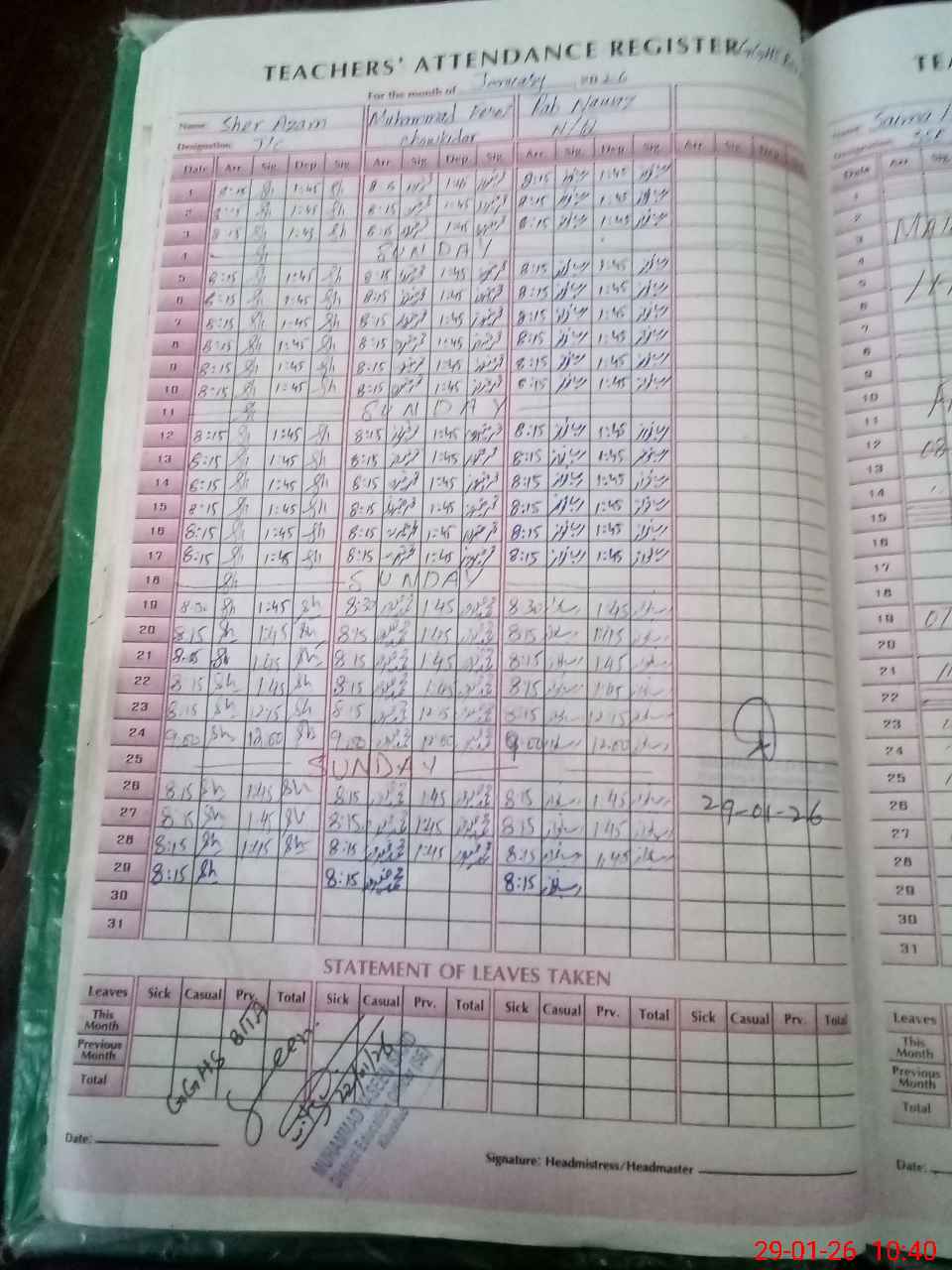 | 38**** | Sh**** No**** | PST Science/Maths | Regular | 26 | 5 | 0 | 26 | 0 | 0 | 0 | 0 | 0 | Maternity |