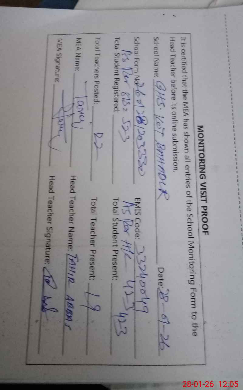 | EMIS Code: 33240049 | Name of School: GHS KOT BAHADAR SHAH | |||