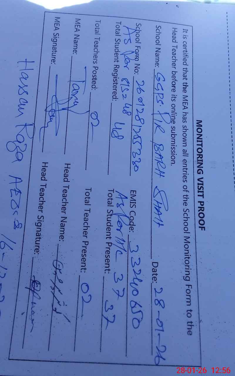 | EMIS Code: 33240650 | Name of School: GGPS PIR BAHR SHAH | |||