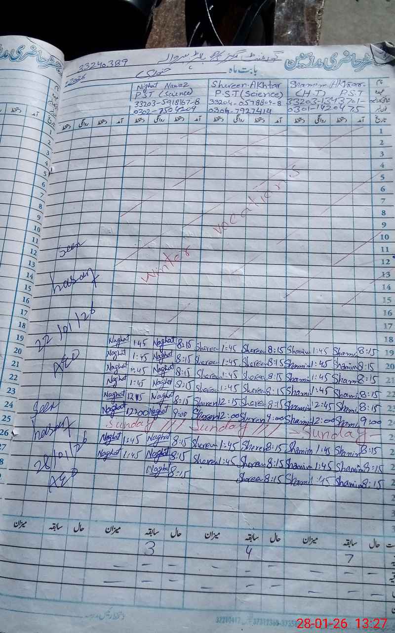 | Name: SH**** AK**** Designation: (School Headmaster's/Headmistress's) PST Phone/Cell Number: 03**** |