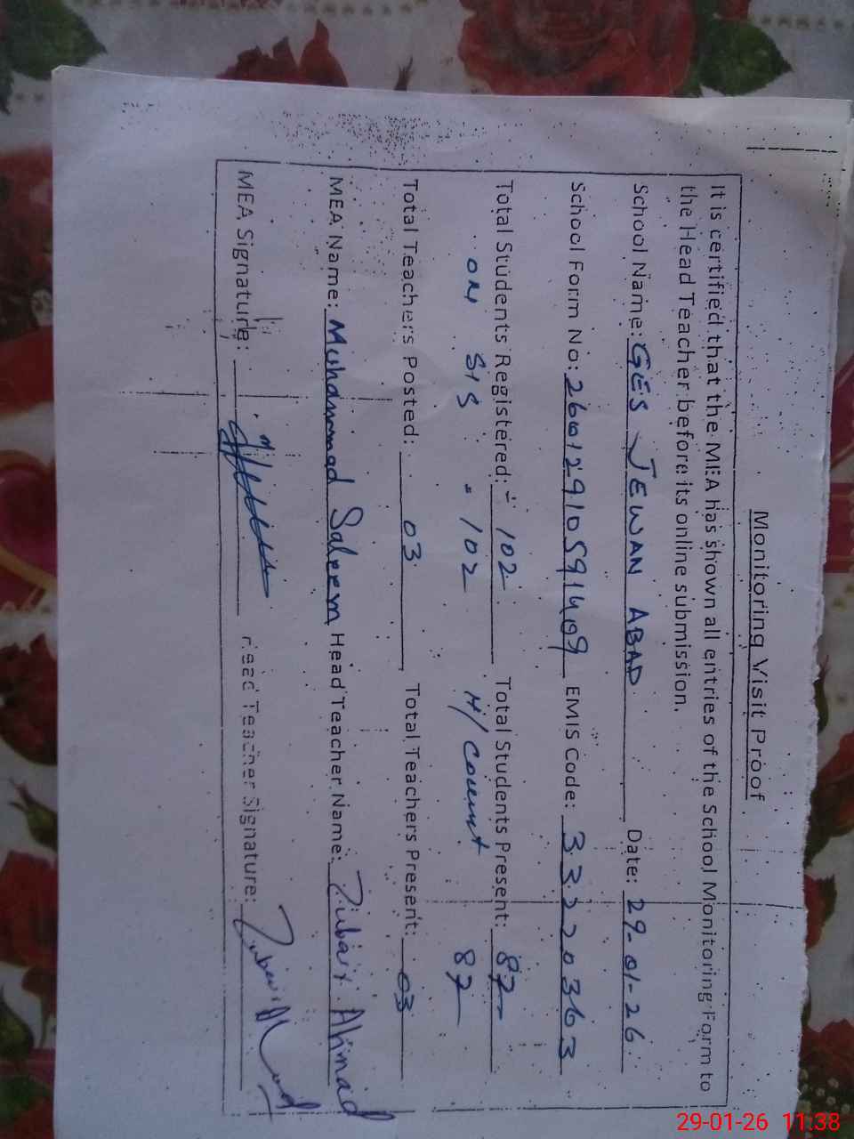 | EMIS Code: 33220363 | Name of School: GPS JEWAN ABAD | |||