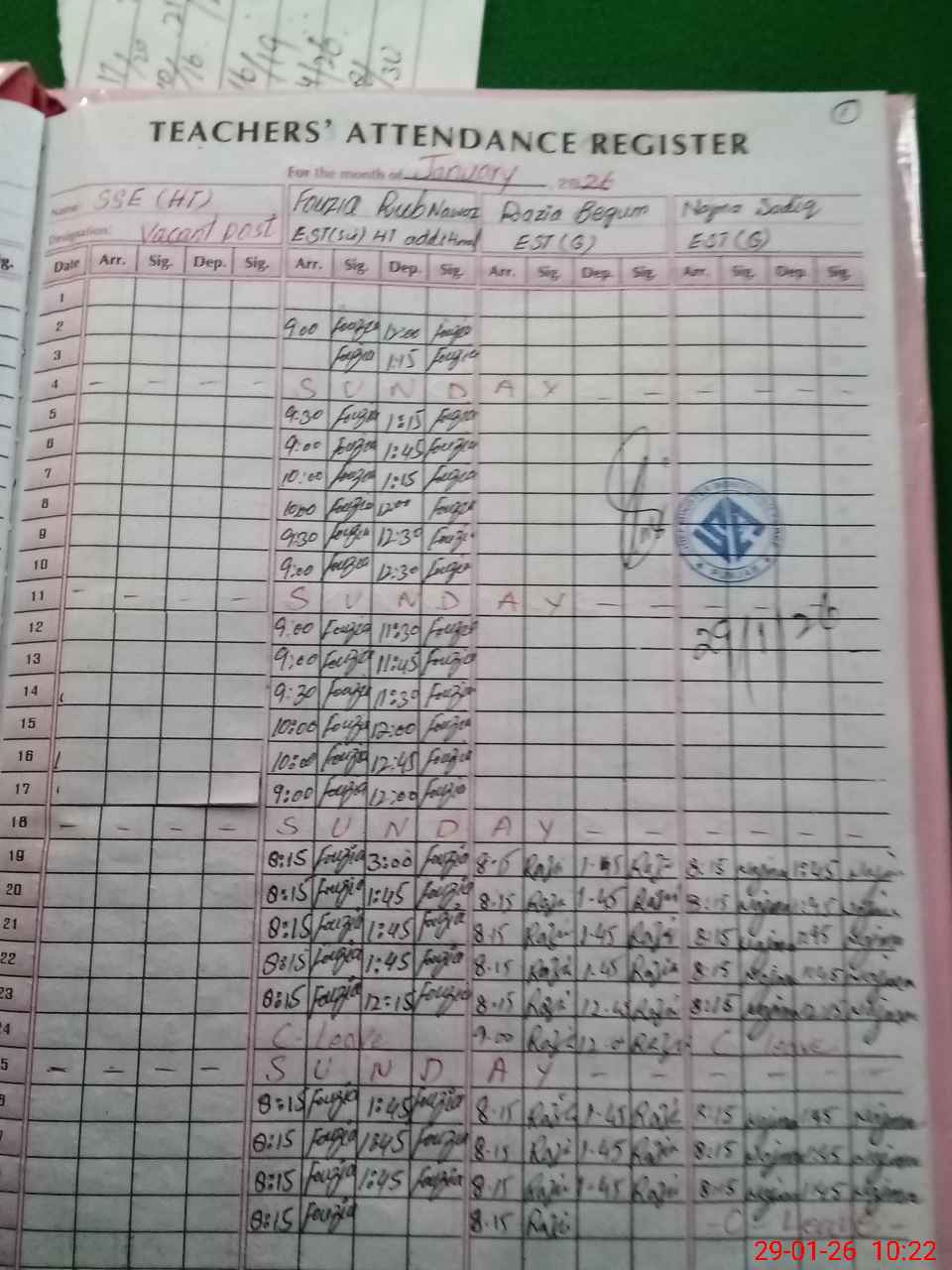 | Monitoring Date: 29-01-2026 | Start Time: 29-01-2026 09:24 AM | End Time: 29-01-2026 10:23 AM | Name of MEA: SH**** AH**** | |