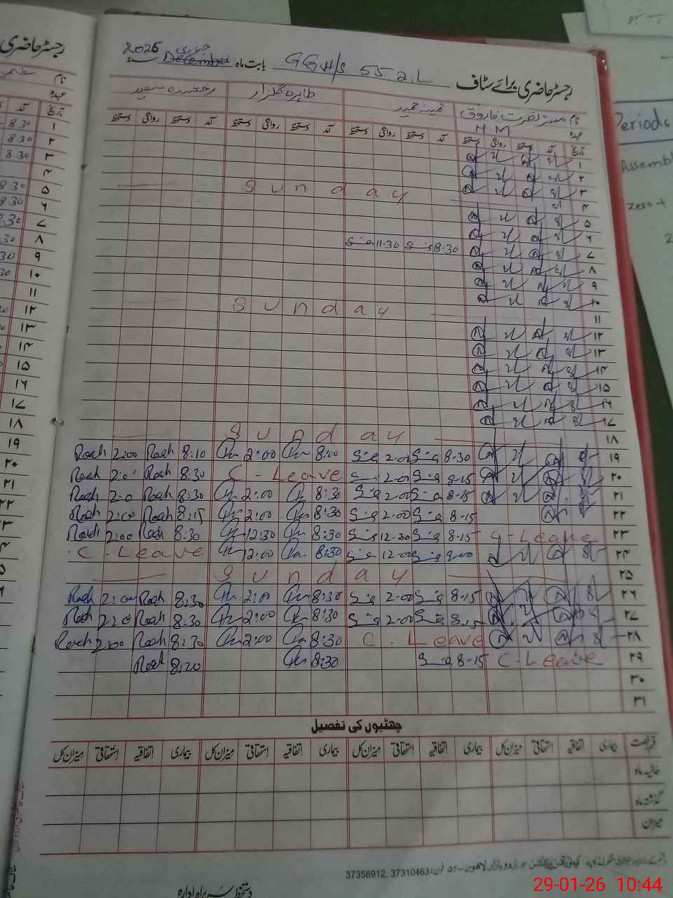 | CNIC | Full Name | Designation | R/C | Absence During Last Calender Month |